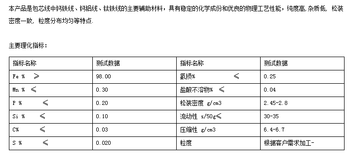 鈣鐵包芯線還原鐵粉標準: